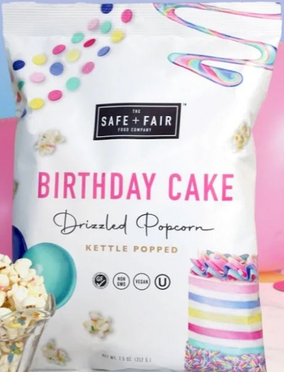 Our signature Birthday Cake flavor drizzled onto kettle-popped popcorn is the snack of your celebratory dreams! A sweet and dairy-free vanilla-flavored coating, dusted with natural-colored rainbow sprinkles makes it feel like it's your birthday year-round. Clean-label ingredients, vegan, gluten-free, and better-for-you than any store-bought birthday cake! Gluten-Free Top 9 Allergen-Free Vegan & Plant-Based Non-GMO Kosher Whole Grain 0g Trans Fat No Preservatives No Artificial Ingredients No High Fructose Corn Syrup