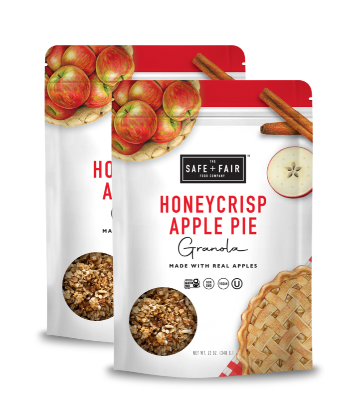 Skip hours in the kitchen trying to make that pie crust! Just tear open a bag of our Honeycrisp Apple Pie Granola instead! Made gluten-free rolled oats, real Honeycrisp apple pieces, and brown sugar, this plant-based vegan granola lets you have dessert for breakfast or a midday snack! We won't blame you if you sprinkle it on some dairy-free vanilla ice cream for Apple Pie à La Mode either! Gluten-Free Top 9 Allergen-Free Vegan & Plant-Based Non-GMO Kosher Whole Grain 0g Trans Fat No Preservatives No Artificial Ingredients No High Fructose Corn Syrup